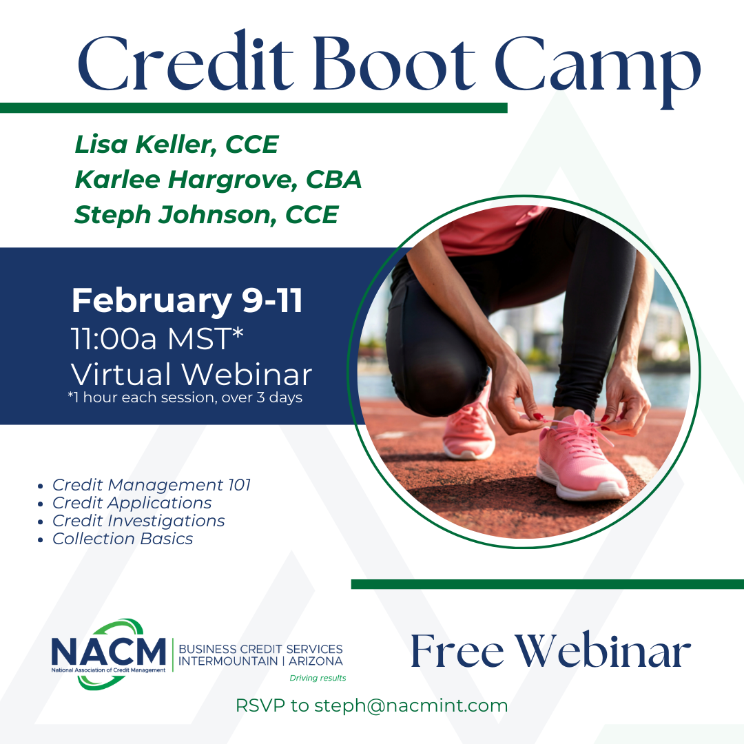 Join long time Credit Managers Lisa Keller, CCE, Karlee Hargrove, CBA, and Steph Johnson, CCE through the basics of Credit Management. Covered topics will allow new and seasoned credit managers alike to learn or relearn best practices in the field of credit. Credit Management 101: Credit Policy, Credit Applications Credit Management 102: Credit Investigation Credit […]